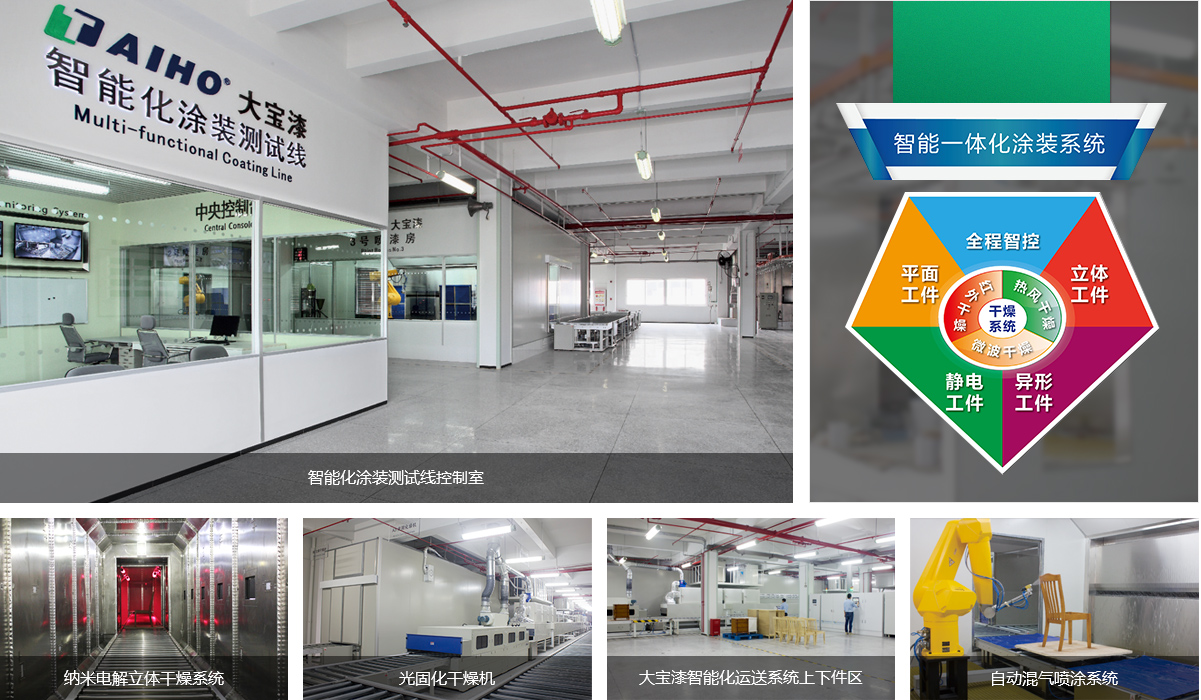 在家具行業在油改水涂裝改革推進過程中,遇到最大的難題就是水性漆的“干燥問題”。對此,大寶漆與中國科學院聯合研發了一套智能化環保涂裝系統。該系統涵蓋水性涂料的自動化涂裝系統、紅外干燥系統、熱風干燥系統、吊線涂裝系統等智能化系統,可滿足客戶的立體工件、平面工件、異型工件等涂裝與干燥的多元化需求,一舉攻破行業油改水涂裝和干燥的重重難關,領先行業實現了家具廠環保自動化涂裝的可能性。
