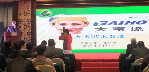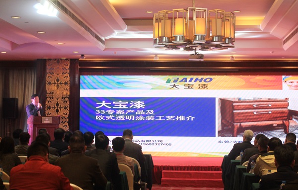 隨后,大寶漆經(jīng)銷事業(yè)部高顯峰課長、張珈銘專員、胡平平課長、鄧偉利專員分別對“三三專案”歐式涂裝、UV木器漆、水性木器漆及寶宮石相關(guān)產(chǎn)品內(nèi)容向大會作報告,其中胡平平課長所作“漆時代‘水’做主”的主題演講成為本次研討會的重點與亮點內(nèi)容。