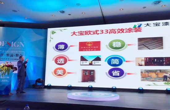 涂料作為木器產(chǎn)業(yè)鏈的下游產(chǎn)業(yè),與家具行業(yè)有著天然的聯(lián)系。作為青木大講堂戰(zhàn)略合作伙伴、木制品涂裝工藝顧問(wèn),大寶漆不負(fù)所望,為大會(huì)帶去了“大寶漆定制家具涂裝解決方案”即大寶歐式涂裝三三專(zhuān)案。黃文敏高專(zhuān)從大寶漆的特點(diǎn)與優(yōu)勢(shì)入手,突出了歐式涂裝所具備的“薄、透、美、穩(wěn)、簡(jiǎn)、省”等特點(diǎn)。
