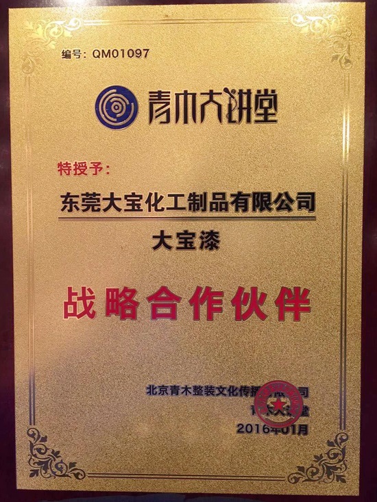 東莞大寶化工葉子琛執(zhí)行經(jīng)理等代表大寶漆應(yīng)邀參加大會(huì),東莞大寶化工黃文敏高專(zhuān)向大會(huì)作“歐式工藝,創(chuàng)新價(jià)值”的主題演講,受到大會(huì)的關(guān)注,同時(shí)大寶漆成為青木整裝“戰(zhàn)略合作伙伴”,繼2015年后大寶漆再次榮膺青木大講堂“木制品涂料工藝榮譽(yù)顧問(wèn)”。