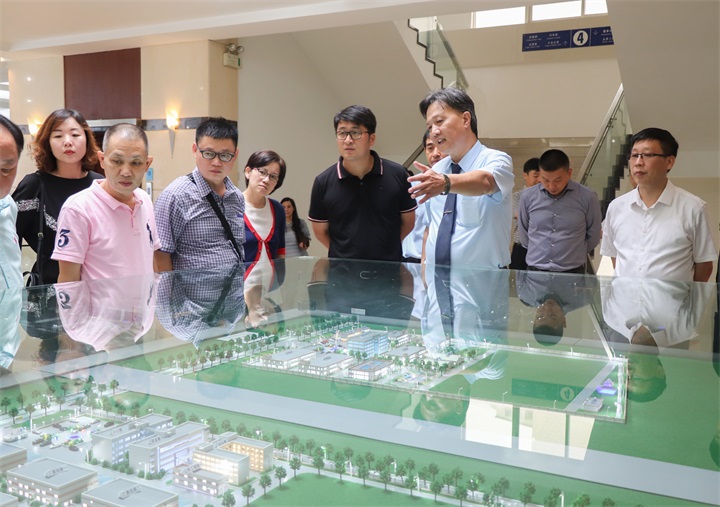 陳董事長(zhǎng)向上海市青浦區(qū)重固鎮(zhèn)金書記領(lǐng)導(dǎo)一行介紹大寶化工