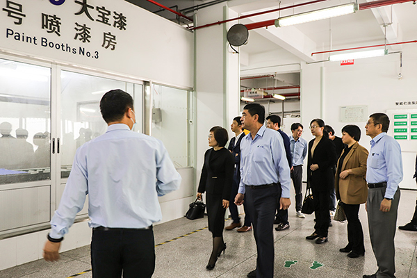 張總表示很榮幸邀請到重固鎮的領導們在百忙之中抽空到我司進行指導,并向來訪領導介紹大寶國際的發展歷程。先后陪同參觀中央實驗室、安管中心、智能水性涂裝線、生產車間、污水處理中心和廢氣處理站等,工作人員詳細介紹各區域的運作情況。