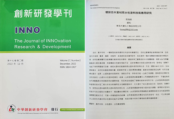 截至目前,東莞大寶化工制品有限公司已經擁有數百項知識產權,自2022年以來,公司已累計新增專利申請10項與新增發表的國際學術期刊文章。