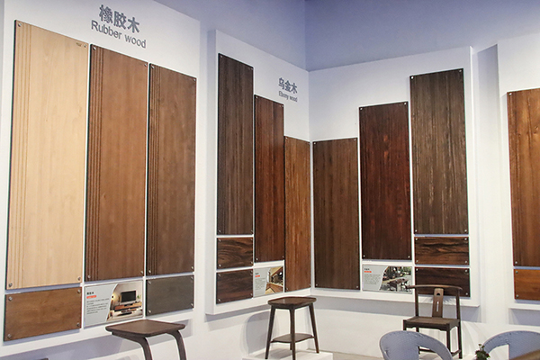 其展示精致與美學共存的色板,以黑檀、烏金木、白蠟木、黑胡桃和奧古曼等為代表的多種素材,呈現了色彩多樣化,工藝環保化趨勢,滿足了用戶對于不同風格的需求。