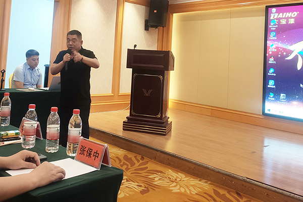 張總監(jiān)深入分析當(dāng)前市場(chǎng)環(huán)境下的應(yīng)對(duì)策略鼓勵(lì)經(jīng)銷商與大寶漆攜手共進(jìn)。