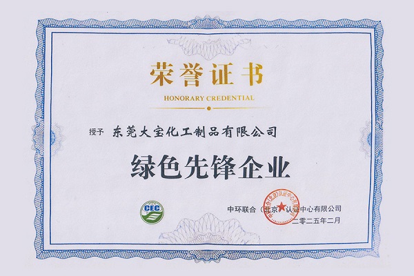 2025年3月20日,在廣東珠海舉行的中環聯合認證中心重點客戶交流會上,東莞大寶化工制品有限公司憑借在綠色低碳領域的卓越表現,榮獲“綠色先鋒企業”稱號,彰顯了其在可持續發展方面的領先實力。