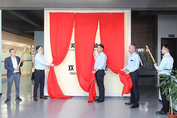 活動(dòng)伊始,在全體與會(huì)人員的共同期待下,張正賢總經(jīng)理、周志鴻副總經(jīng)理與葉小兵營(yíng)銷(xiāo)總監(jiān)共同為全新展廳揭幕。