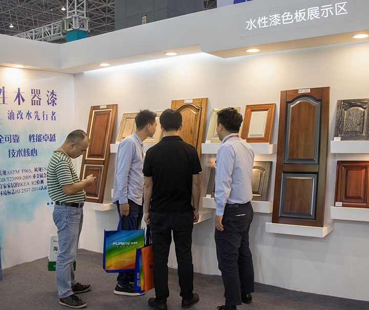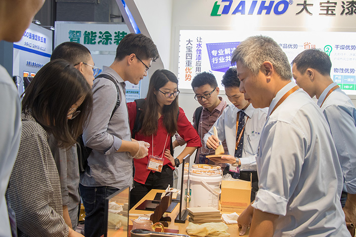 針對整個行業(yè)的環(huán)保轉(zhuǎn)型需求,大寶漆一直致力于推動環(huán)保涂裝。其中,大寶漆展示的水性著色劑具著色與防脹筋效果、簡化流程,無需使用素材處理劑、涂膜通透性優(yōu)異等,可極大的滿足家具廠復(fù)古簡約產(chǎn)品的涂裝需求。該產(chǎn)品的涂膜厚度達(dá)到納米級別,可與國際頂尖化工集團(tuán)PPG、阿克蘇諾貝爾等的產(chǎn)品比美。在展會上該產(chǎn)品一度成為觀展商關(guān)注咨詢的焦點(diǎn)。