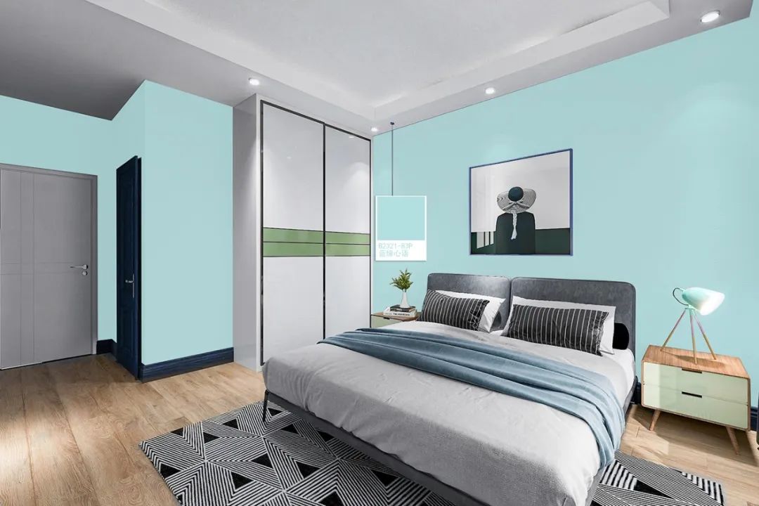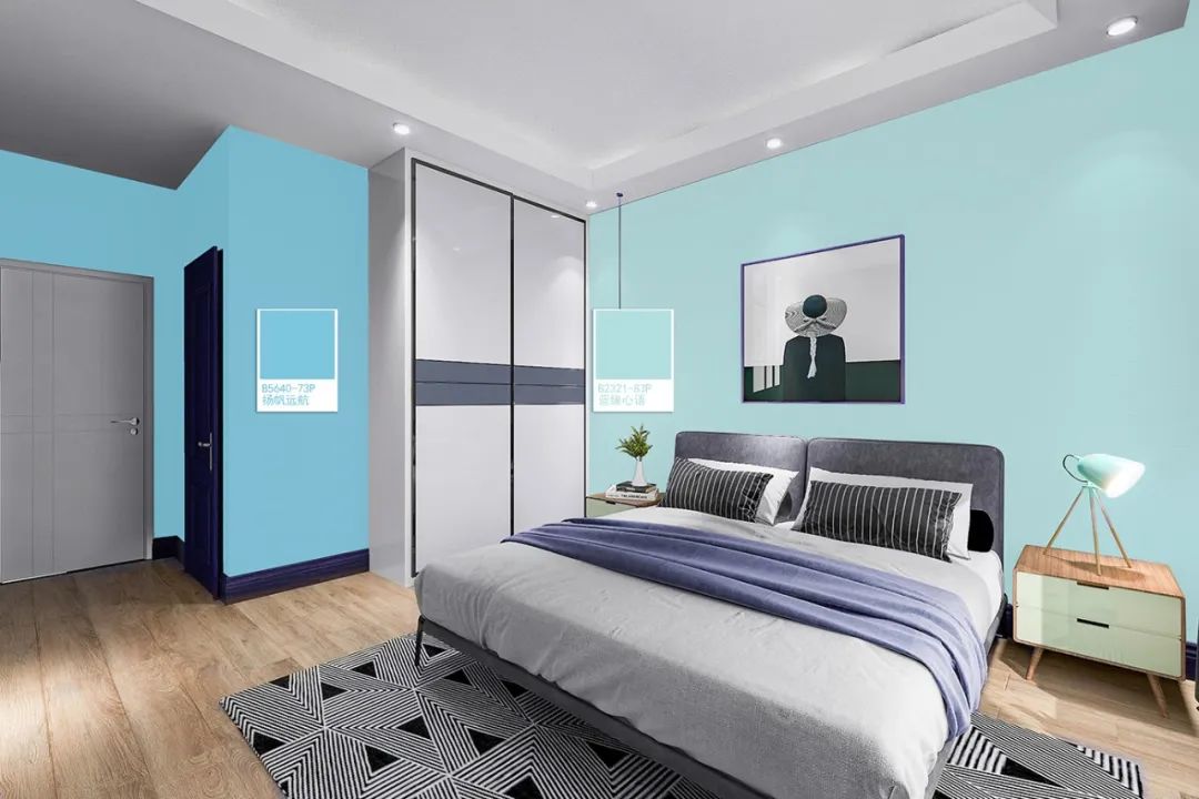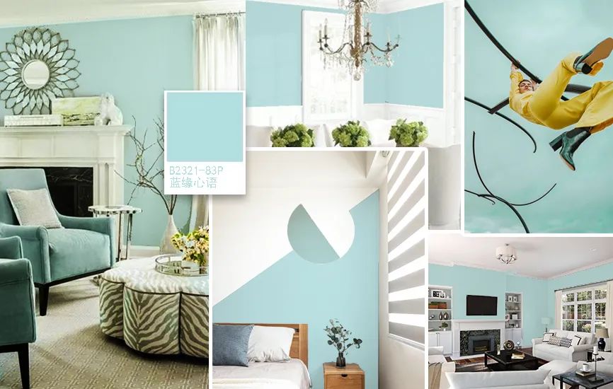 相近色也叫類似色,是運用標(biāo)準(zhǔn)色環(huán)上任何部分的45°-60°內(nèi)的色。EX:黃-黃綠-綠;紅-紅橙-橙..等,均為相近色。藍(lán)綠色系不論用在何處,皆能適度提升溫柔與優(yōu)雅,大寶設(shè)彩家刻意挑選純度調(diào)節(jié)到中等程度的B5640-73P揚帆遠(yuǎn)航,是一淡化過后的藍(lán)色,飽和度低、明度高,搭配起來能帶給人寧靜平和的感受。當(dāng)然選色處理得當(dāng),色感也更加豐富,相似色組合搭配能表達(dá)在維持原有風(fēng)格的同時,讓空間視覺更有層次感。