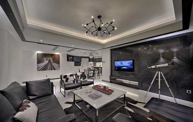 當代設計中最常出現的三色,黑、白與灰,這三個顏色放在一起富有時尚氣息,充分體現自然、閑適、簡潔、時尚的新生活理念,帶給人內心的寧靜。以白色最基調,比例約50%白,15%灰,35%黑,包含飾品及軟件的配色,讓空間更有質感!