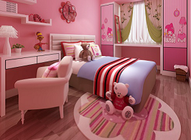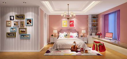 常用于兒童房或是喜愛粉色系的萌系少女,粉色可以帶來浪漫的情調,但是久而久之,居住者會產生煩躁情緒,且顏色過于粉嫩單一,較不耐看,一陣子就會看膩了這樣的配色,