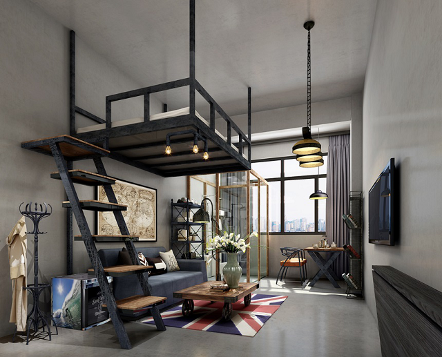 常見的主色為水泥淺灰,鐵灰,墨綠色,或鐵灰色,這類的顏色從配角成為主角,既然以冷色系做為基調,那么剩下的顏色就一定要用暖色相搭,飾品的選擇盡可能選用鮮艷色彩的,比如掛畫、地毯,明亮的色彩會提升整個空間的明度。避免空間顯得過冷,密訣就是維持天花板的高度及彩度,不讓空間過于暗沉而緊迫,工業風的個性之處就在于大膽而不修邊幅的隨心搭配。